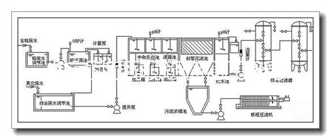 一般采用工艺有:调节池+混凝反应池+沉淀池+过滤池